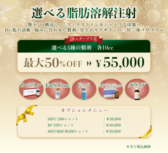 内容:スレッドリフト20本+U225(Dr.乾オリジナル薬剤)+麻酔