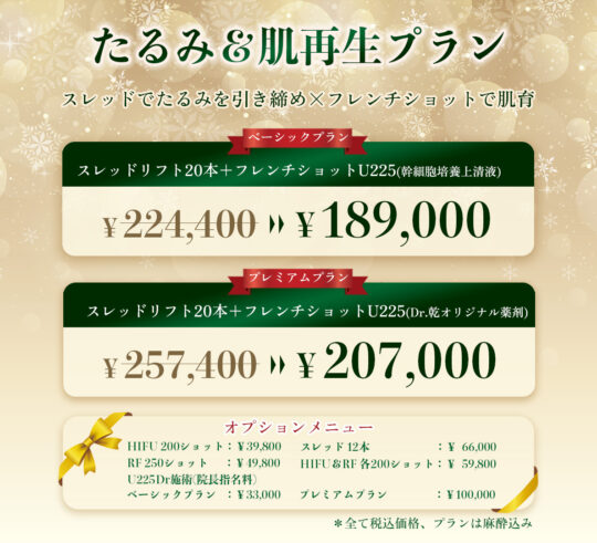 スレッドリフト20本+U225(幹細胞培養上清液)+麻酔